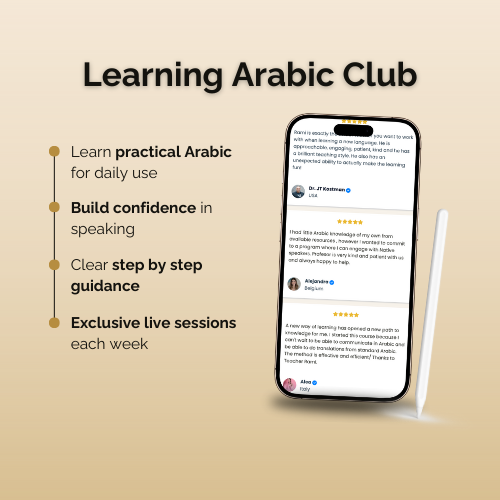 Learn practical Arabic with weekly live sessions, a clear learning path and full access to all core materials.